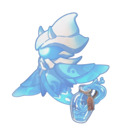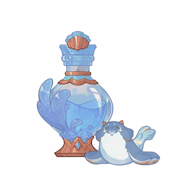 a fuzzy companion headcanon 002she proves to be an abode to many animals, almost akin to cinderella in how her entourage of hydro critters help her get dressed each morning — ribbons tied by crabaletta, gloves offered by chevalmarin && usher. yet among her lively aquatic attendants, her most peculiar companion is not a creature of her own creation. it is a tiny, terrestrial thing: a mouse named parfait.they did not get along at the beginning.when furina first moved into her new residence in the city, far from the marble halls && mirrored chambers of the palais mermonia, she found parfait already nestled inside her cabinet of imported teas, nibbling contentedly through silk sachets && dried fruit. horrifically insulted, she tried to chase the little thief away with sprays of hydro and a dramatic shriek. parfait, entirely unfazed, darted beneath a stack of couture boxes and continued living rent-free for nearly a week, dodging each and every trap and enchantment she laid.their truce began when furina, tired and nursing a bitten fingertip, sighed && dropped a few pumpkin seeds on the windowsill. parfait crept out, then took them … and instead of fleeing, curled up beside her untouched cup of tea. since then, he’s claimed her coat pocket as his personal home, tucking himself into the lining like a pearl in silk, crunching away at whatever snacks he can find.now, she pretends not to notice when he curls up on the pillow beside her at night. or when he drags one of her gloves behind the dresser to add to his hoard. of course, she insists very loudly that he’s fortunate to live under her roof. but when parfait scampers out in the morning to join the hydro chorus that prepares her gown, there’s a certain softness in her voice when she calls his name.