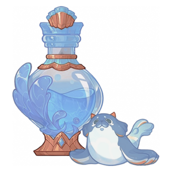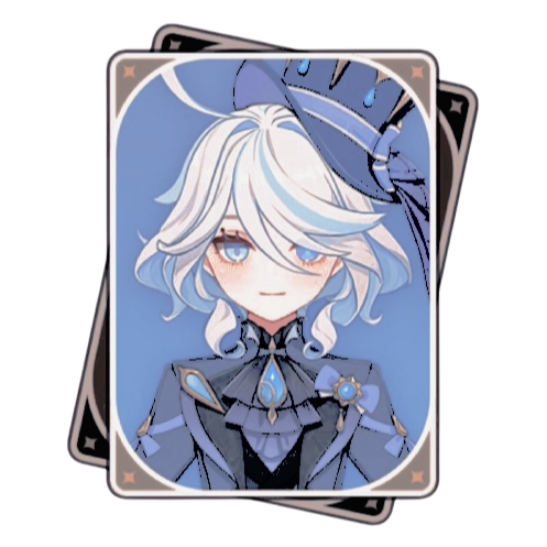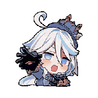 a fuzzy companion headcanon 002she proves to be an abode to many animals, almost akin to cinderella in how her entourage of hydro critters help her get dressed each morning — ribbons tied by crabaletta, gloves offered by chevalmarin && usher. yet among her lively aquatic attendants, her most peculiar companion is not a creature of her own creation. it is a tiny, terrestrial thing: a mouse named parfait.they did not get along at the beginning.when furina first moved into her new residence in the city, far from the marble halls && mirrored chambers of the palais mermonia, she found parfait already nestled inside her cabinet of imported teas, nibbling contentedly through silk sachets && dried fruit. horrifically insulted, she tried to chase the little thief away with sprays of hydro and a dramatic shriek. parfait, entirely unfazed, darted beneath a stack of couture boxes and continued living rent-free for nearly a week, dodging each and every trap and enchantment she laid.their truce began when furina, tired and nursing a bitten fingertip, sighed && dropped a few pumpkin seeds on the windowsill. parfait crept out, then took them … and instead of fleeing, curled up beside her untouched cup of tea. since then, he’s claimed her coat pocket as his personal home, tucking himself into the lining like a pearl in silk, crunching away at whatever snacks he can find.now, she pretends not to notice when he curls up on the pillow beside her at night. or when he drags one of her gloves behind the dresser to add to his hoard. of course, she insists very loudly that he’s fortunate to live under her roof. but when parfait scampers out in the morning to join the hydro chorus that prepares her gown, there’s a certain softness in her voice when she calls his name.